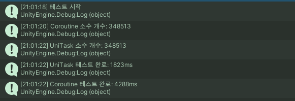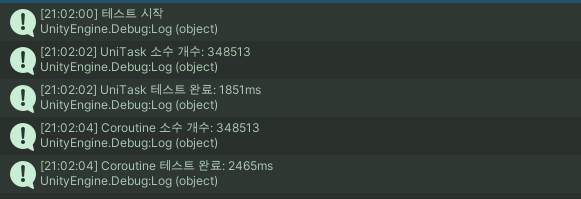 Debug.Log($"UniTask 소수 개수: {primeCount}");